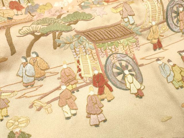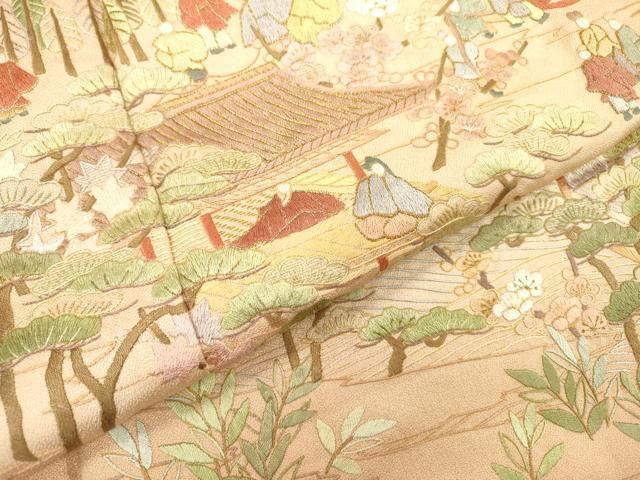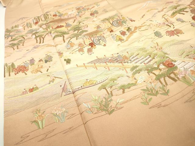 平和屋着物▼訪問着 総刺繍 人物風景 暈し染 金糸 正絹 逸品 DAAX9268fe