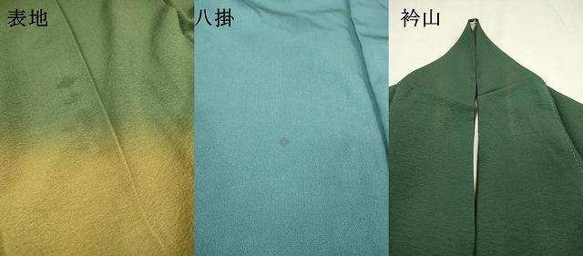 状態は接写画像のように表地所々・八掛・衿山に薄い汚れがございます。