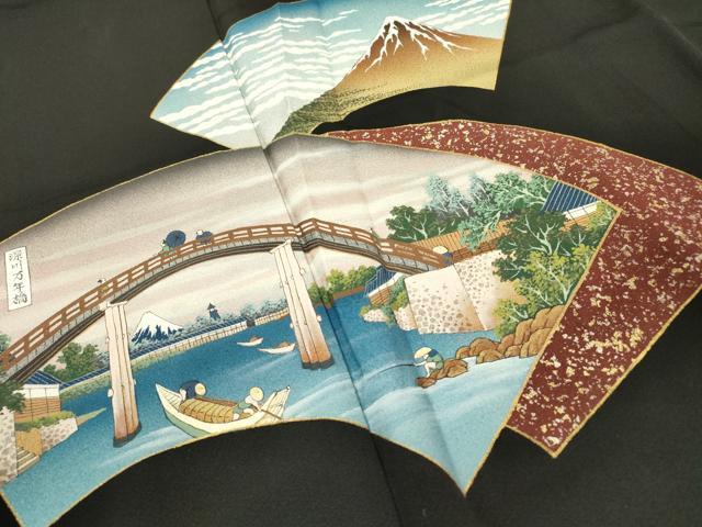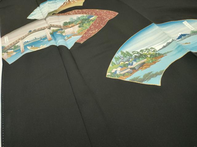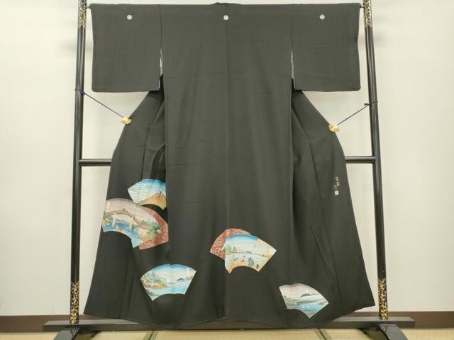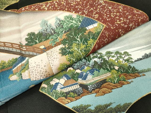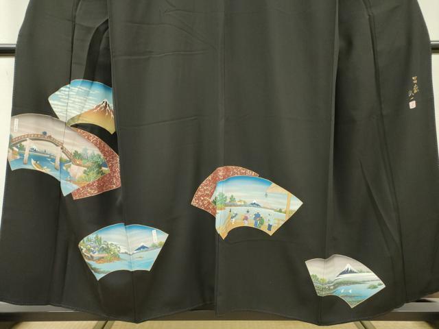 平和屋着物▼豪華黒留袖 作家物 手描き 地紙風景文 金彩 正絹 逸品 DAAZ6556fe