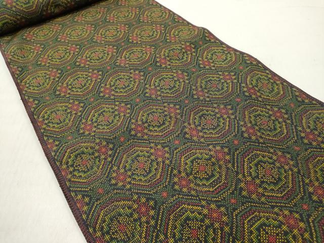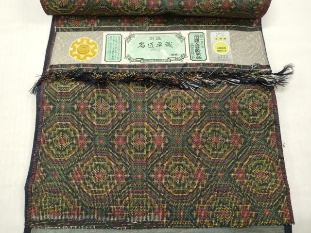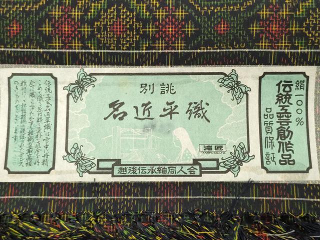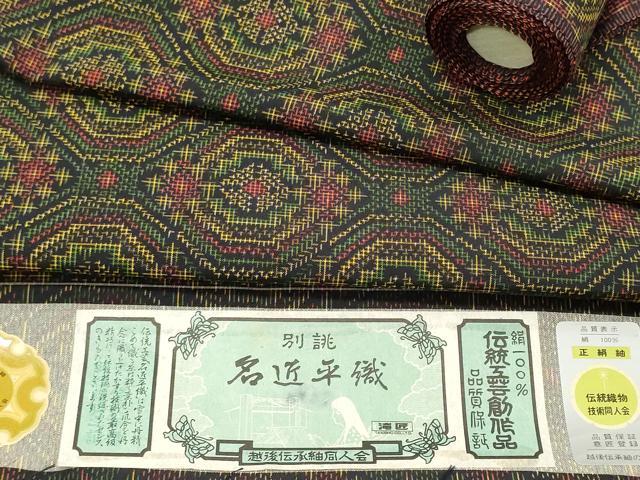 平和屋着物▼越後伝承紬 反物 着尺 名匠平織 蜀江文 証紙付き 逸品 未使用 DABE3126we