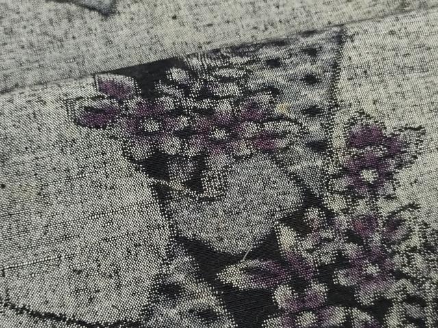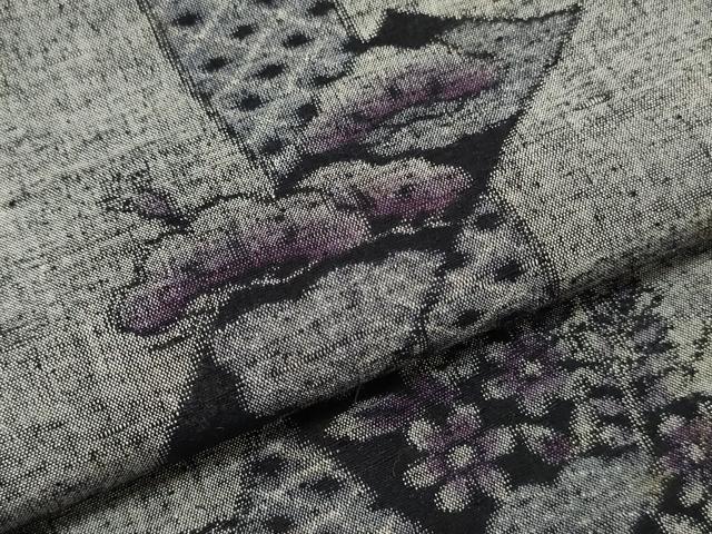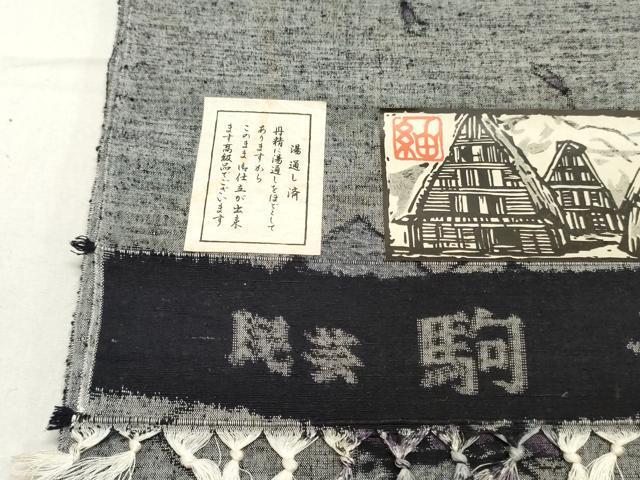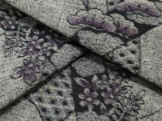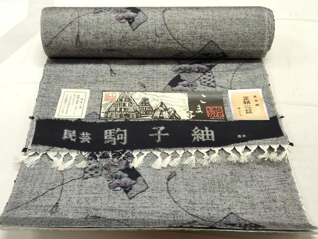 平和屋着物▼駒子紬 反物 着尺 民芸織 短冊花松文 証紙付き 逸品 未使用 DAAX6847zy