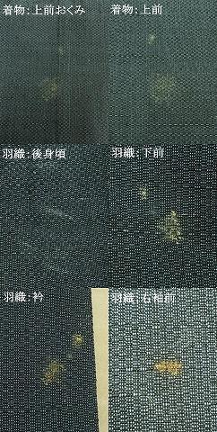 羽織の状態は接写画像のように後身頃・下前・衿・右袖前に薄い汚れがございますが