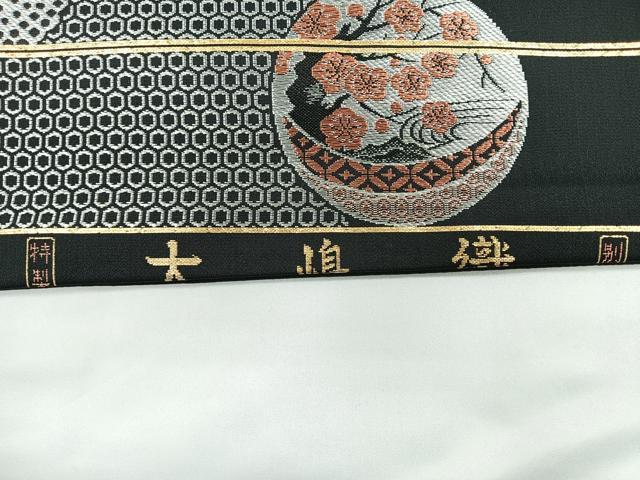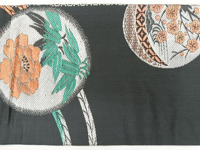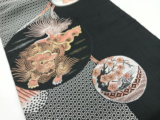 平和屋着物◎アンティーク 大正ロマン 九寸名古屋帯 唐獅子 大嶋織 黒地 金銀糸 正絹 逸品 CABB0914nb