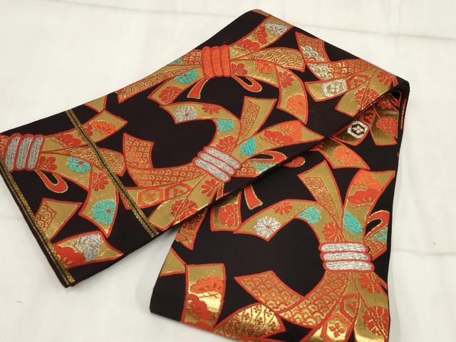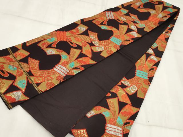 平和屋着物◎七五三 袋帯 唐織 束ね熨斗花文 金銀糸 正絹 逸品 AABH8054wj