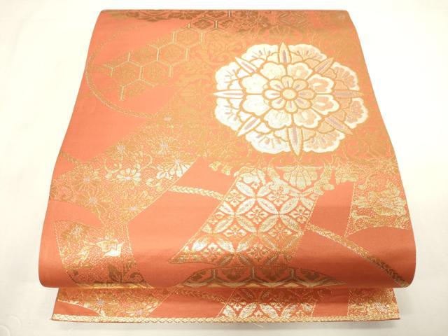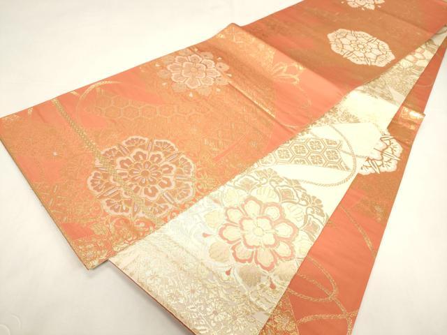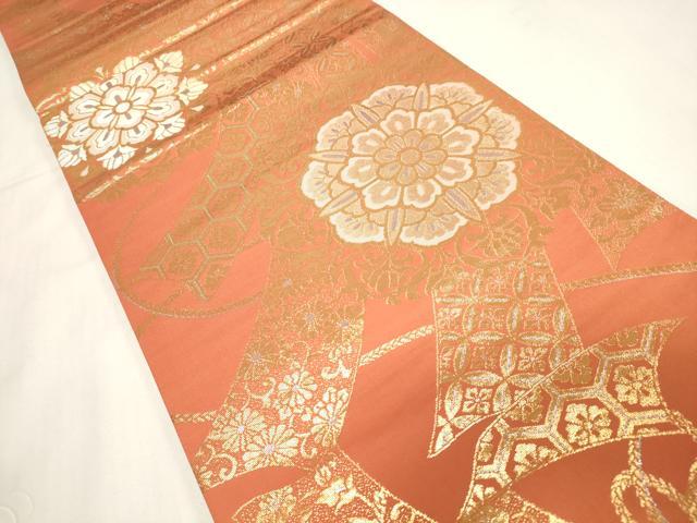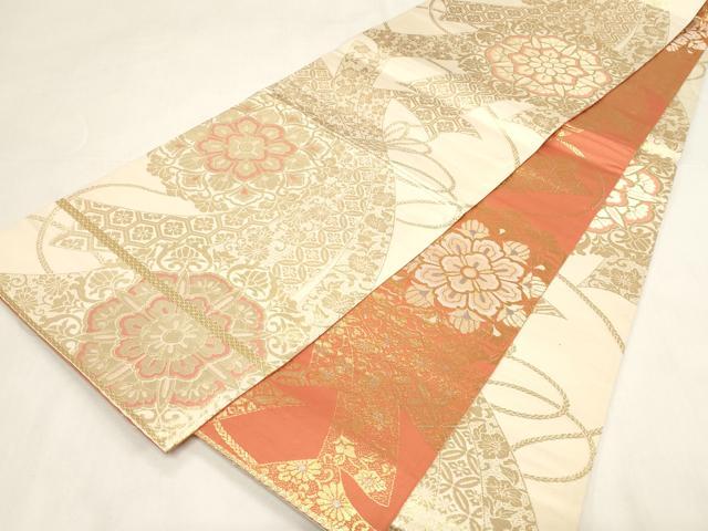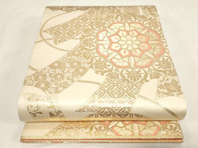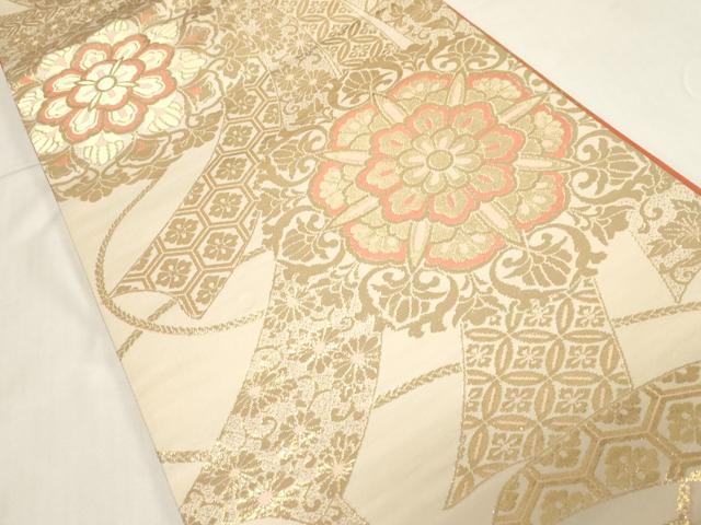 平和屋着物◎両面 全通柄袋帯 束ね熨斗花文 金銀糸 正絹 逸品 未使用 CABF6053dy