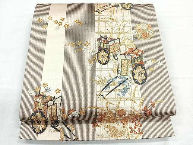 平和屋着物◎両面 六通柄袋帯 唐織 御所車文 金糸 正絹 逸品 CABG1208nb