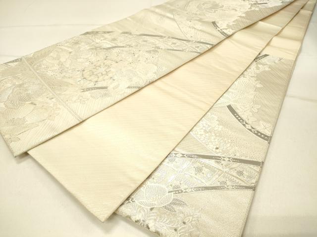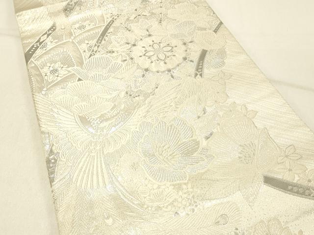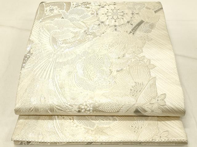平和屋着物◎両面 六通柄袋帯 唐織 花鳥文 銀糸 正絹 逸品 DABE3906qp