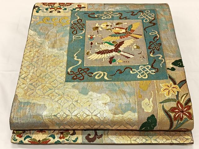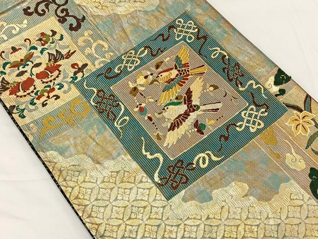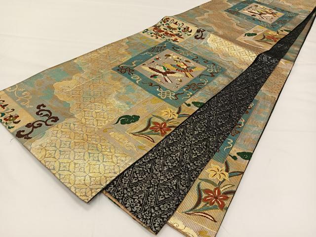 平和屋着物◎両面 六通柄袋帯 正倉色紙重ね文 金糸 引箔 正絹 逸品 CAAY1178qv