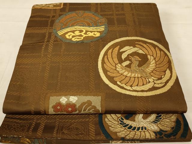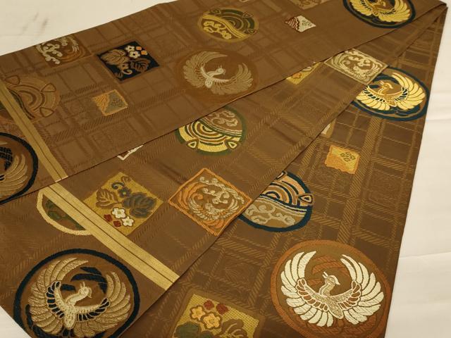 平和屋着物◎丸帯 花鳥文 金糸 正絹 逸品 AABC8386dt