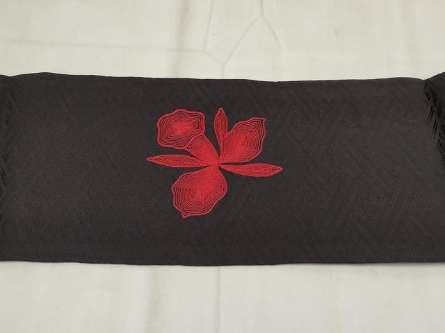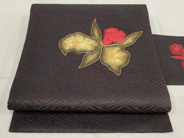 平和屋着物◎九寸名古屋帯 刺繍 草花文 金糸 正絹 逸品 AABH7981wj