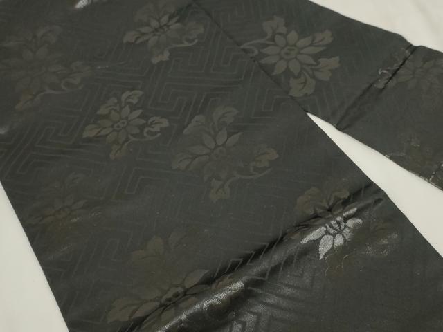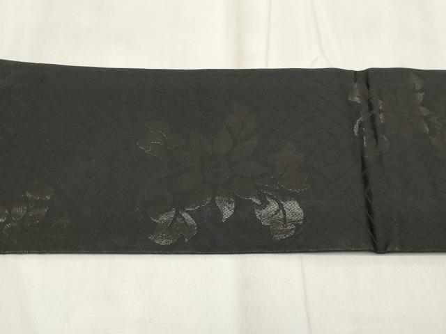 平和屋着物◎九寸名古屋帯 草花文 黒地 正絹 逸品 AABH8159wj