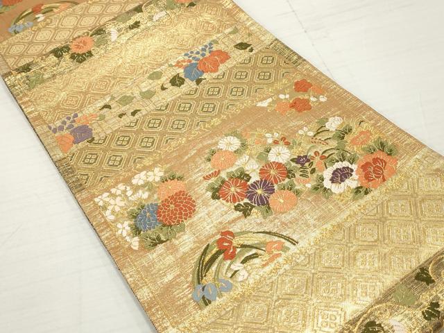平和屋着物◎佐賀錦 六通柄袋帯 綴織 唐織 横段花丸文 金糸 正絹 逸品 DABA3140qa