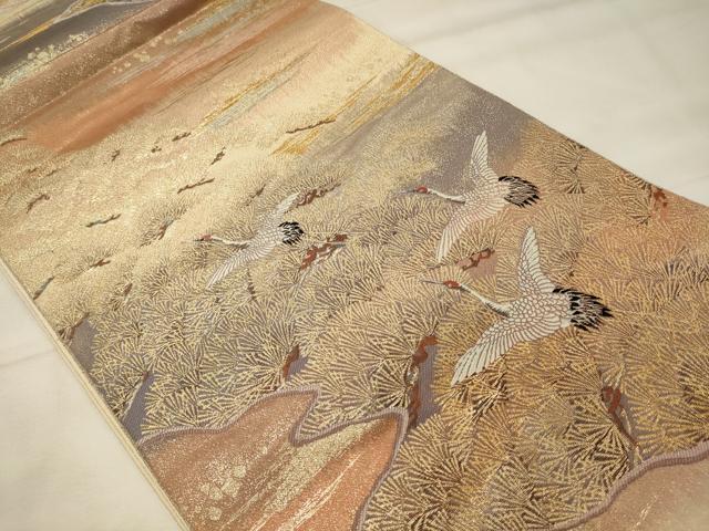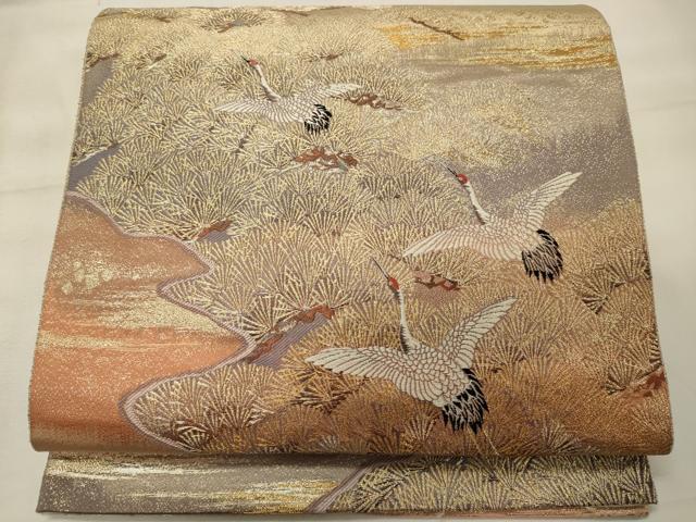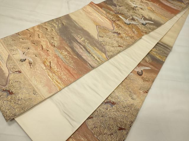 平和屋着物◎六通柄袋帯 九百錦 蒔絵松鶴文 金糸 正絹 逸品 CABF5895oy
