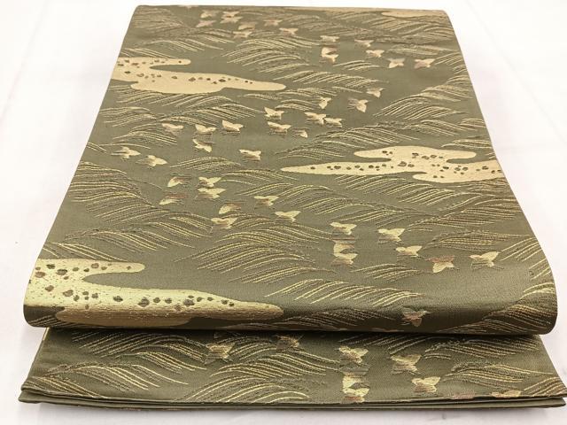 平和屋着物◎六通柄袋帯 千鳥立波文 金銀糸 正絹 逸品 未使用 BAAW8878yc