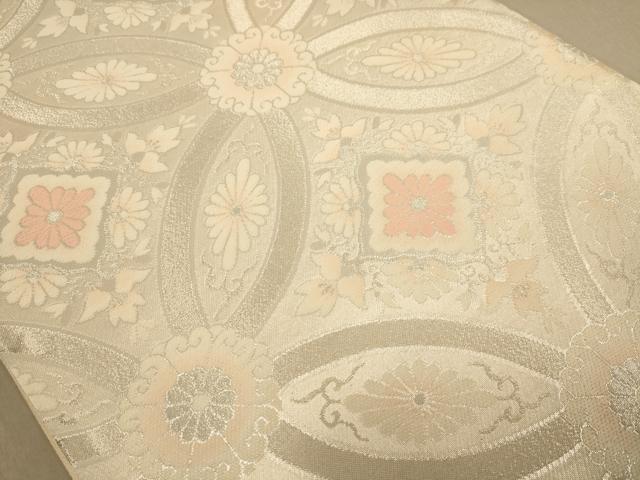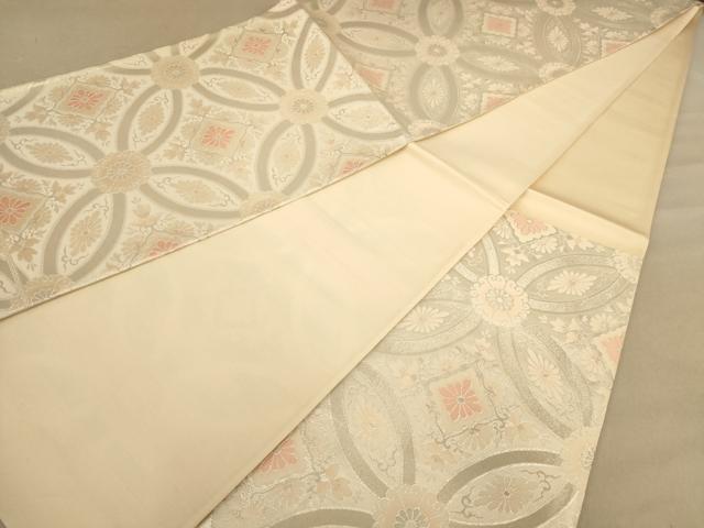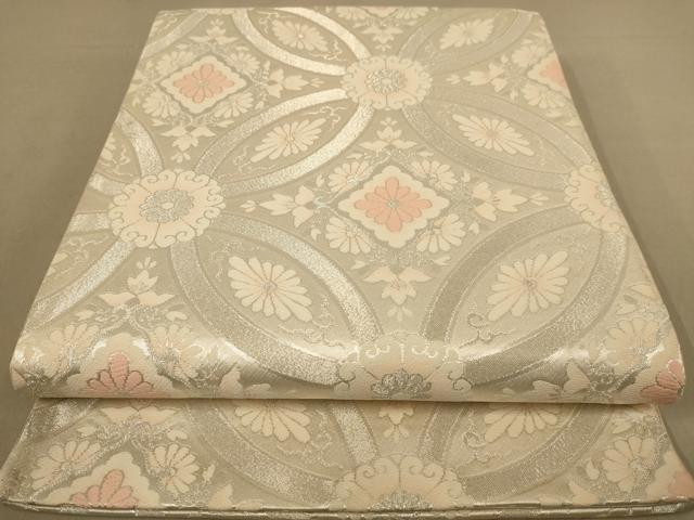 平和屋着物◎六通柄袋帯 唐織 七宝花文 銀糸 正絹 逸品 AABC8551dt