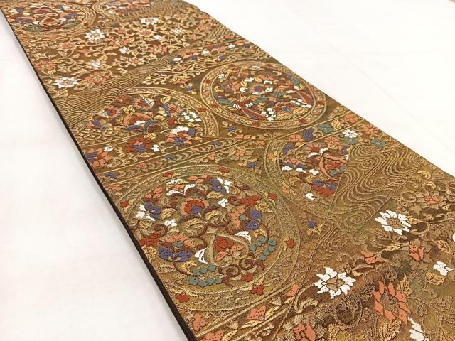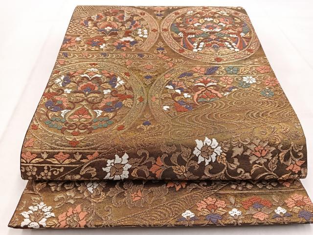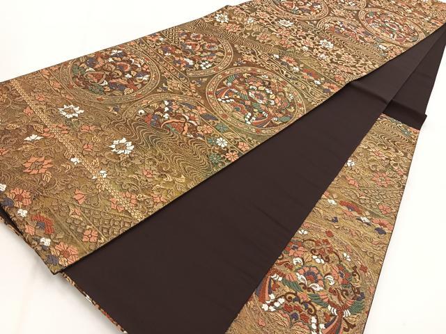 平和屋着物◎六通柄袋帯 唐織 切嵌更紗花鳥文 金糸 引箔 正絹 逸品 BAAW8884yc