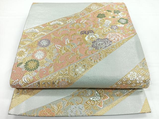 平和屋着物◎六通柄袋帯 唐織 吉祥花丸文 金銀糸 引箔 正絹 逸品 CABB0926nb