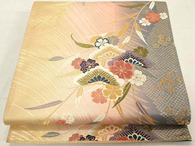 平和屋着物◎六通柄袋帯 唐織 吉祥花文 金糸 正絹 逸品 DAAZ8184cd