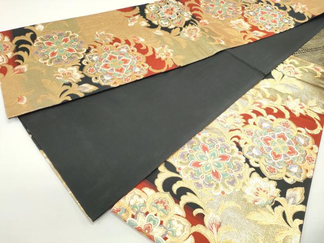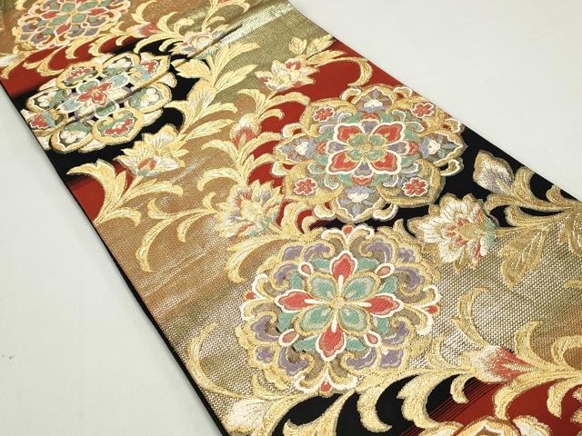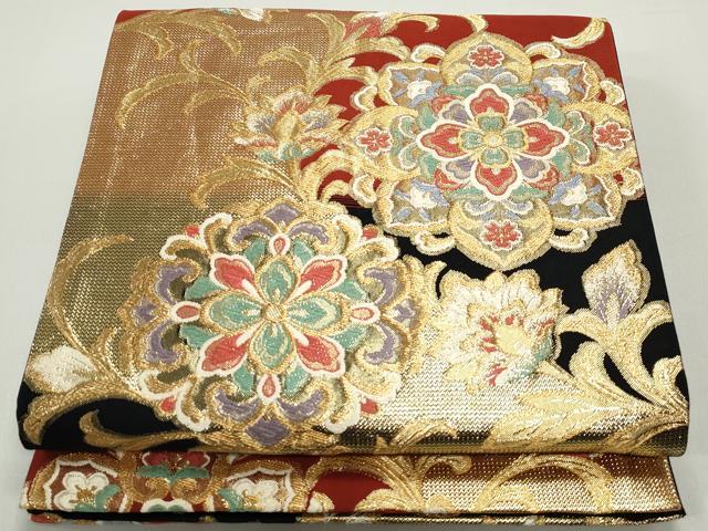 平和屋着物◎六通柄袋帯 唐織 唐花 正倉院花文 更紗 黒地 金糸 正絹 逸品 DABE8719qa
