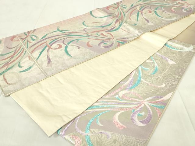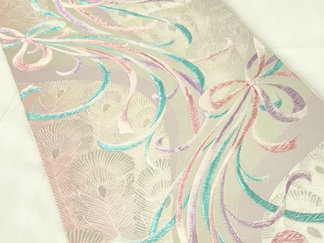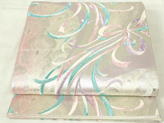 平和屋着物◎六通柄袋帯 唐織 孔雀羽文 来夢来人 銀糸 正絹 逸品 DAAZ9405qp