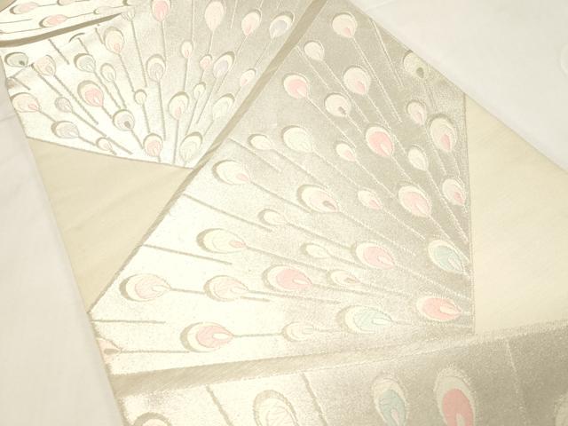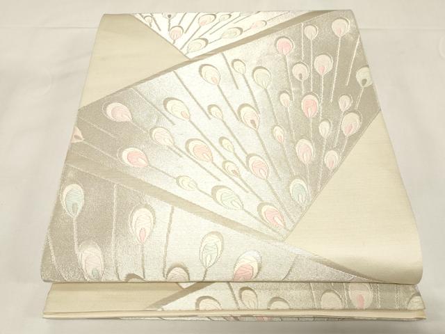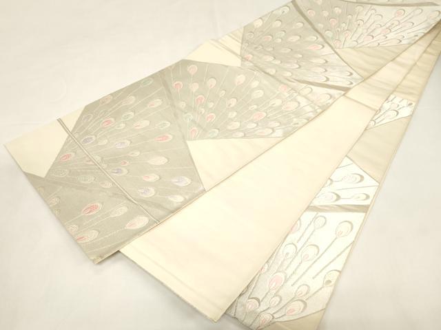 平和屋着物◎六通柄袋帯 唐織 孔雀羽文 銀糸 正絹 逸品 未使用 CABE9591dy