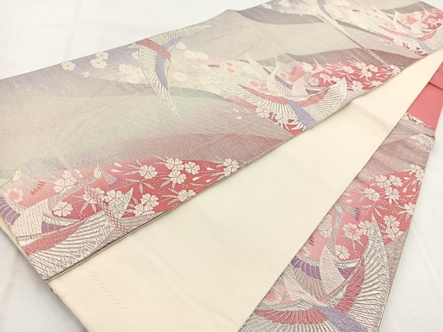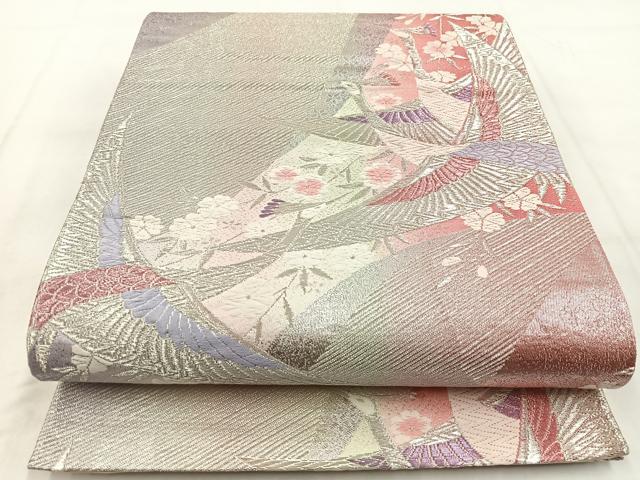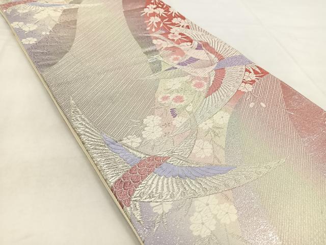 平和屋着物◎六通柄袋帯 唐織 孔雀花文 銀糸 正絹 逸品 BAAW8858yc