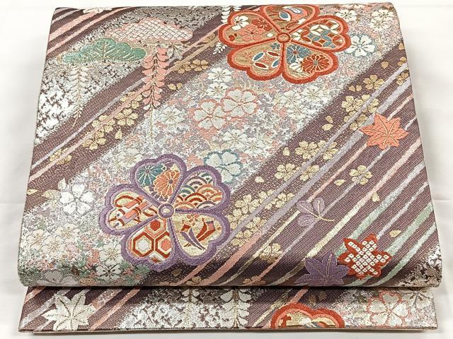 平和屋着物◎六通柄袋帯 唐織 斜線吉祥花文 金銀糸 正絹 逸品 CAAX2990id