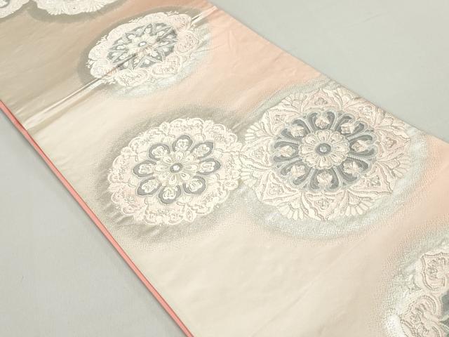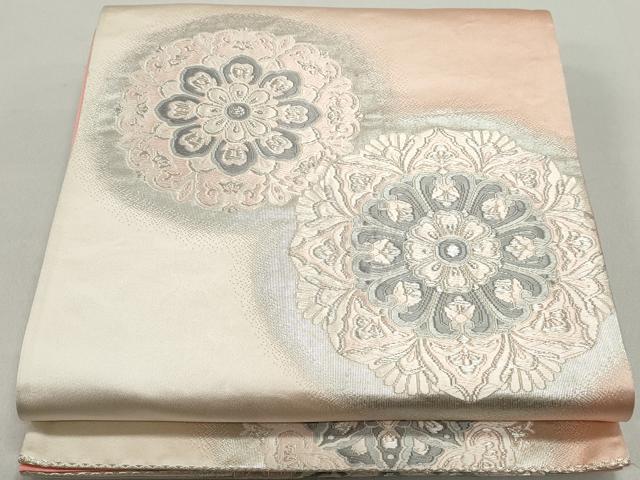 平和屋着物◎六通柄袋帯 唐織 正倉院花文 銀糸 正絹 逸品 DABE8708qa