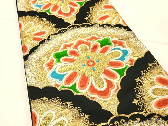 平和屋着物◎六通柄袋帯 唐織 正倉院花文 黒地 金糸 正絹 逸品 DABE3802qp