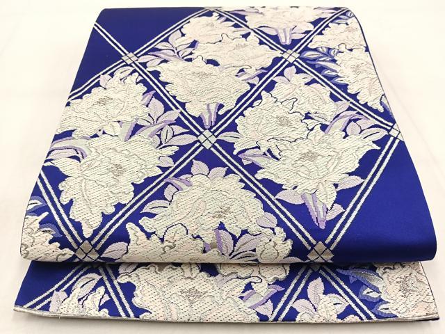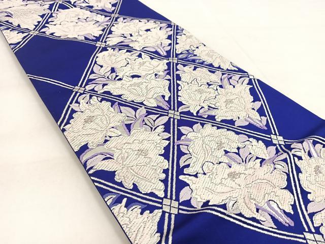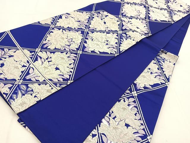 平和屋着物◎六通柄袋帯 唐織 菱天井花文 銀糸 正絹 逸品 BAAW8808yc