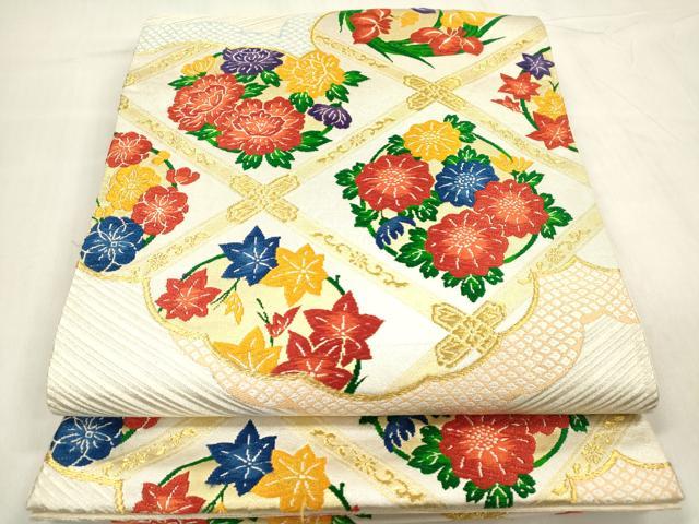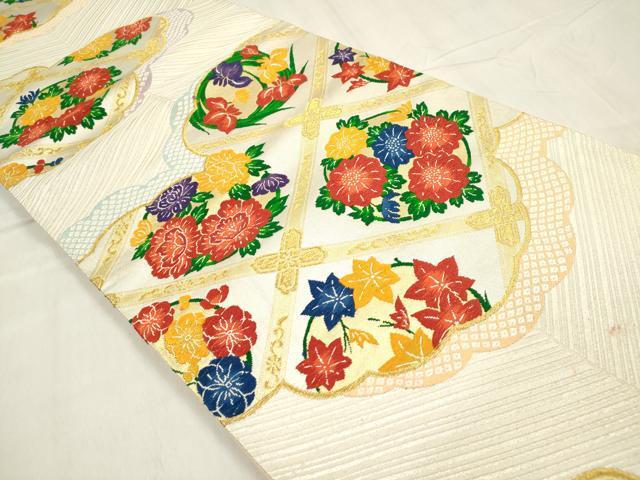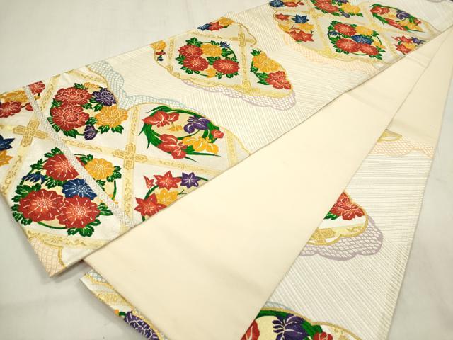 平和屋着物◎六通柄袋帯 唐織 雲取り天井花文 金糸 正絹 逸品 DABB6857ea