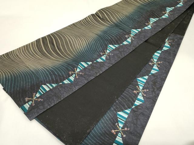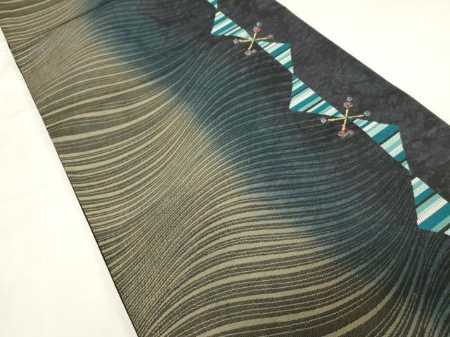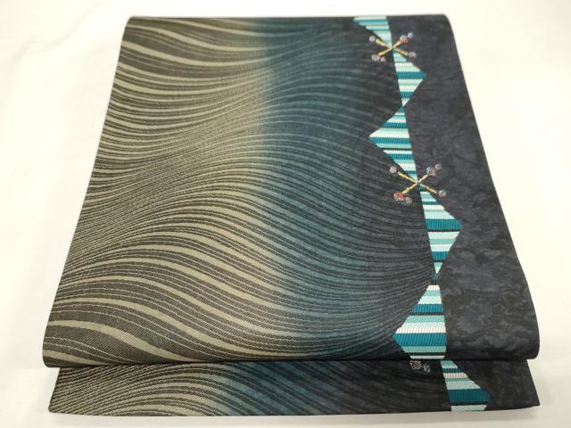 平和屋着物◎六通柄袋帯 幾何学文 黒地 金銀糸 正絹 逸品 CABF6031dy