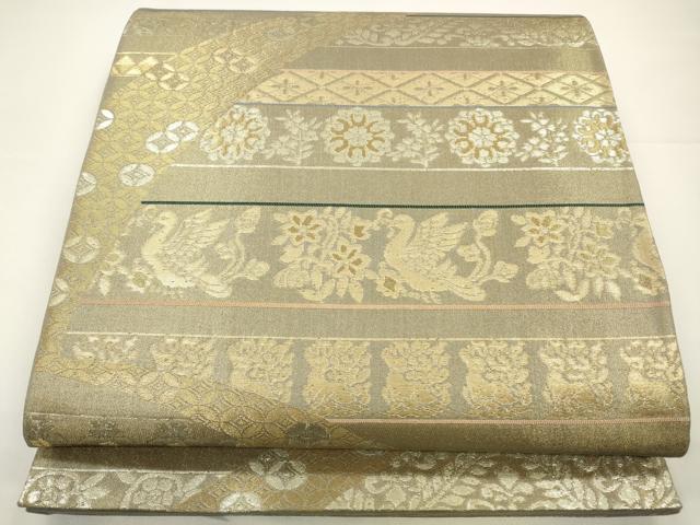 平和屋着物◎六通柄袋帯 横段名物裂 花兎 金糸 正絹 逸品 CAAW9348qe