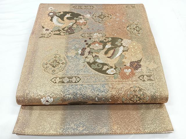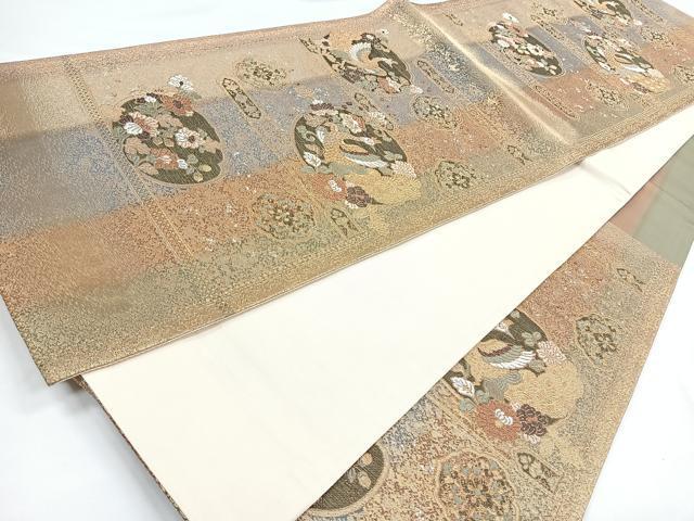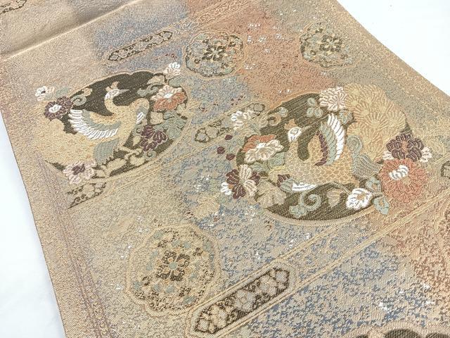 平和屋着物◎六通柄袋帯 横段孔雀花文 金糸 正絹 逸品 CABB0917nb