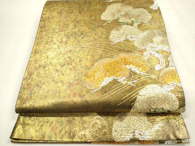 平和屋着物◎六通柄袋帯 立波松文 金銀糸 引箔 正絹 逸品 DABB6855ea