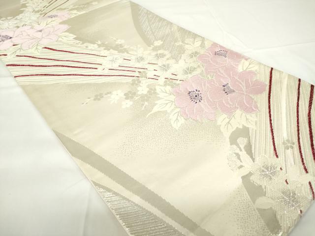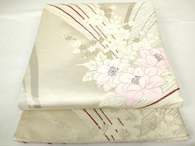 平和屋着物◎六通柄袋帯 舞花文 銀糸 正絹 逸品 DAAZ5602ea