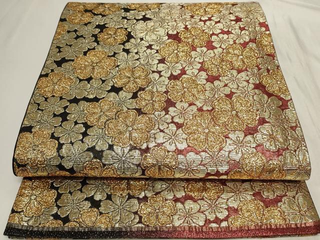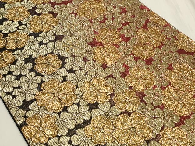 平和屋着物◎六通柄袋帯 花づくし 金糸 正絹 逸品 CAAY9029in