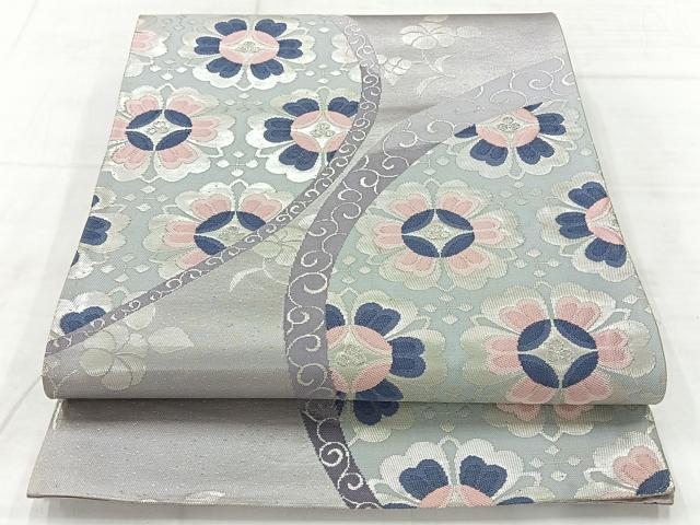 平和屋着物◎六通柄袋帯 花唐草文 銀糸 正絹 逸品 AABC9065uk