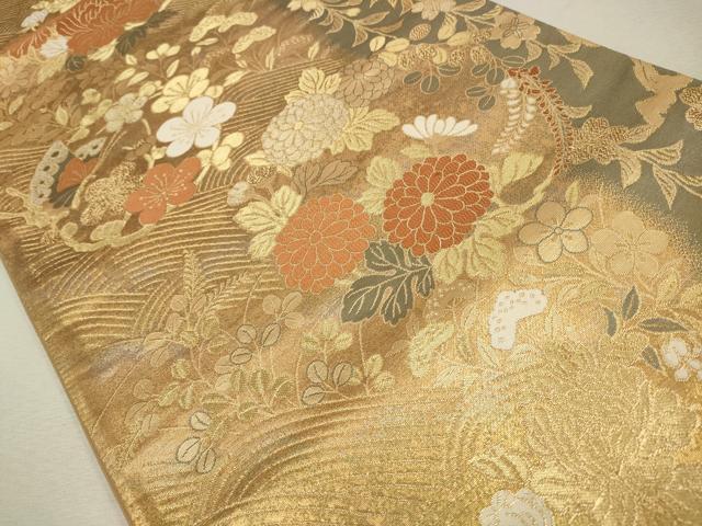 平和屋着物◎六通柄袋帯 花蝶文 秋草 金糸 引箔 正絹 逸品 CAAW9593qe