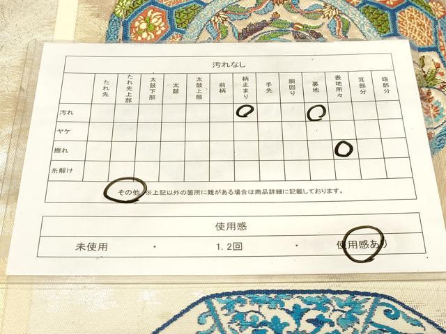 ※柄止まりに折山の線汚れ、裏地所々に汚れがございます。