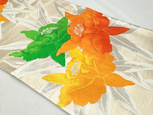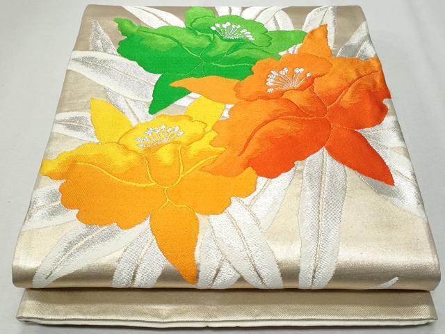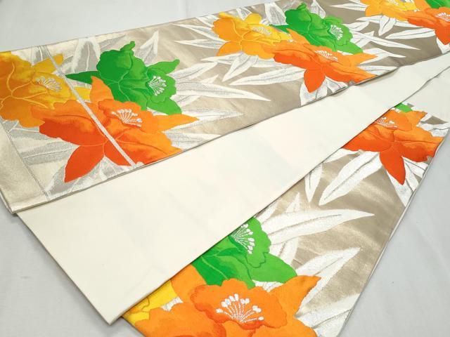 平和屋着物◎六通柄袋帯 草花文 銀糸 正絹 逸品 CABA7671fb