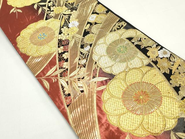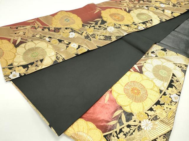 平和屋着物◎六通柄袋帯 草花文 黒地 金銀糸 正絹 逸品 DABE8718qa