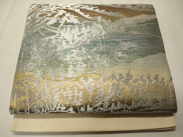 平和屋着物◎六通柄袋帯 遠山草木文 金銀糸 正絹 逸品 CABE8119oy