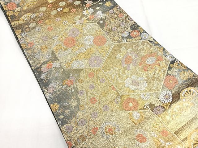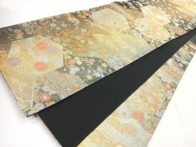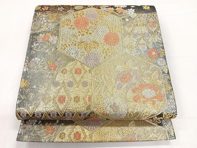 平和屋着物◎六通柄袋帯 陽映 道長亀甲秀花文 金銀糸 鈴乃屋扱い 正絹 逸品 CABG1206nb