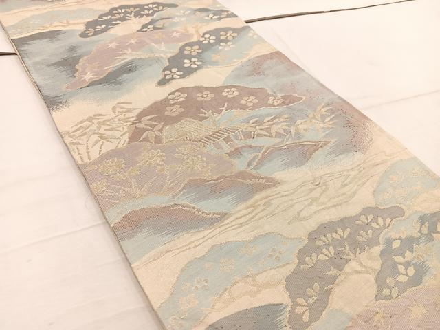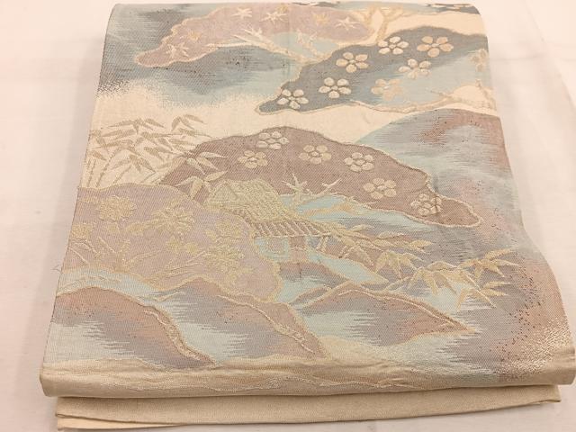 平和屋着物◎六通柄袋帯 風景花文 金糸 正絹 逸品 BAAW1374mz