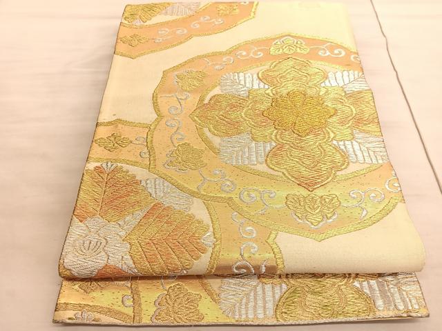 平和屋着物◎六通柄袋帯 飾花文 金銀糸 正絹 逸品 BAAV8866hv