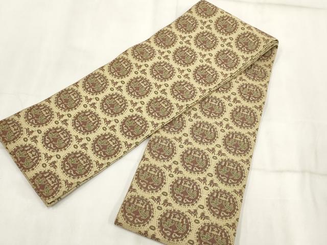 平和屋着物◎半幅帯 鳥獣丸文 正絹 逸品 AABH8124wj