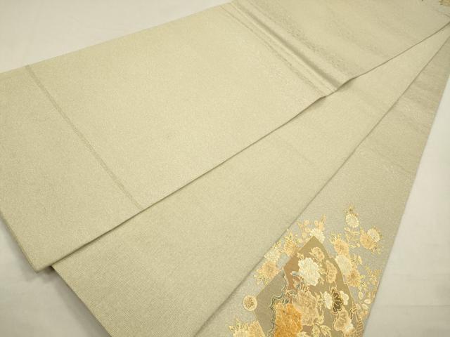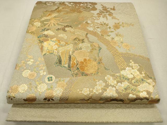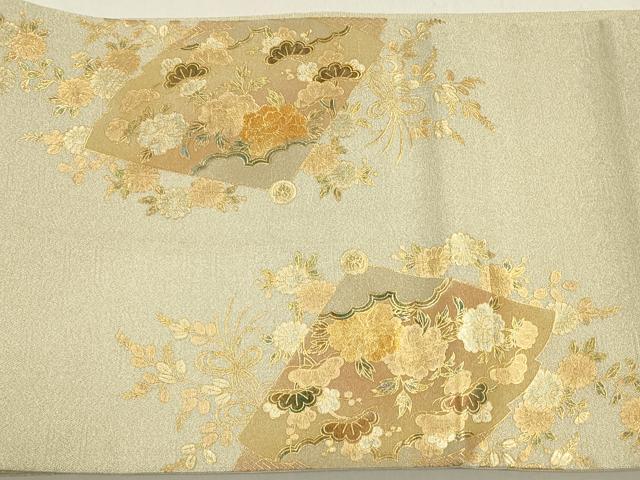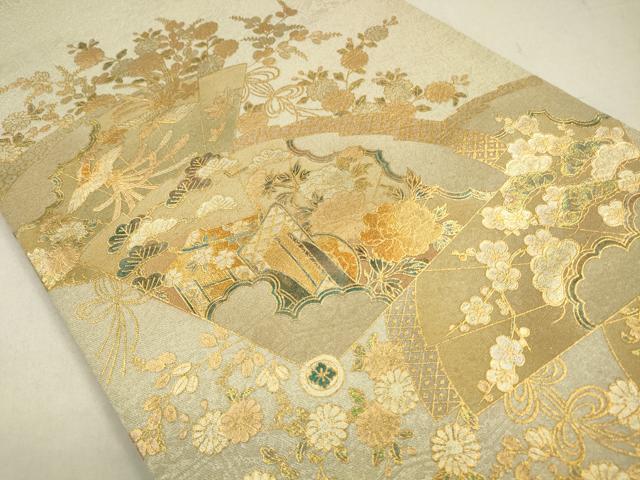 平和屋着物◎太鼓柄袋帯 扇面御所車花文 金銀彩 正絹 逸品 CABA3806qe