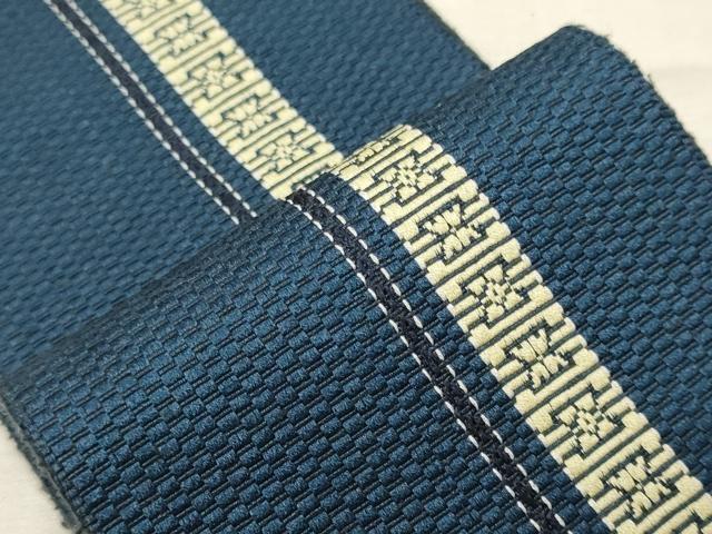 平和屋着物◎男性 本場筑前博多織 両面 角帯 間道 正絹 逸品 CABF5675oy