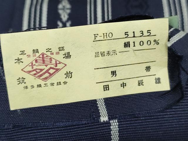平和屋着物◎男性 本場筑前博多織 角帯 献上 田中辰雄作 証紙付き 正絹 逸品 DABD4492qa